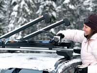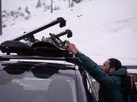 - Montera skidhållaren på ett stabilt takräcke