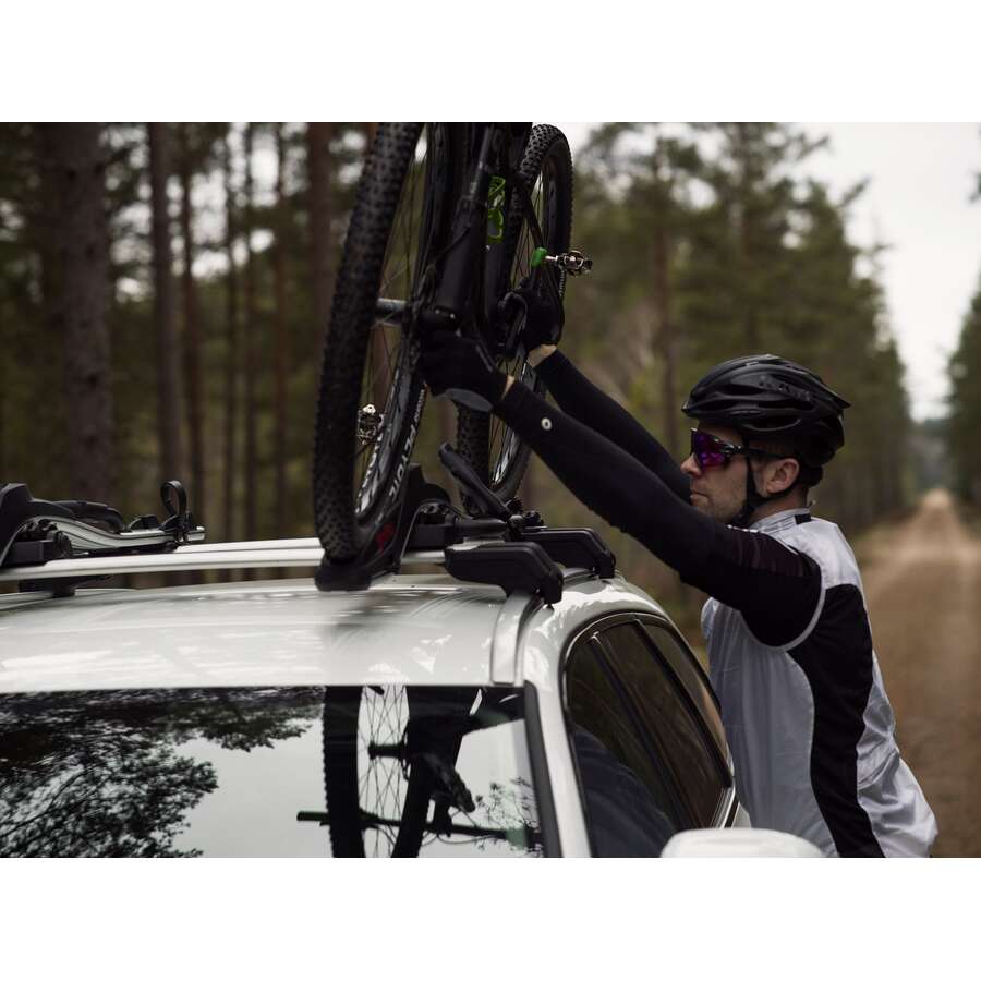 Denna takmonterade cykelhållare är kompatibel med de flesta standard aluminium takräcken och håller en cykel säkert på plats. Den har ett enkel låssystem som säkrar både cykeln och hållaren, med handsfree montering för enkel lastning. Den lätta men hållbara designen säkerställer enkel hantering, medan den mångsidiga klämarmen möjliggör installation på båda sidor av biltaket. Förmonterad för snabb installation – inga verktyg krävs. Designad för maximal säkerhet och kvalitet, uppfyller ISO 11154-standarder.